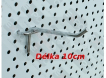 Jednoduchý háček na děrovaný panel, délka háčku 10cm, kvalitní chrom, Ø5mm drát. Karton 100ks. zadní rozteč 45mm