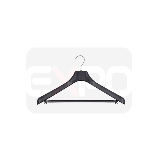 Plastový profilovaný věšák s příčkou, šířka 45cm. Barva černá.