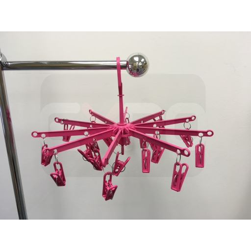 Plastový kruhový závěs s 20 plastovými skřipci, růžový.